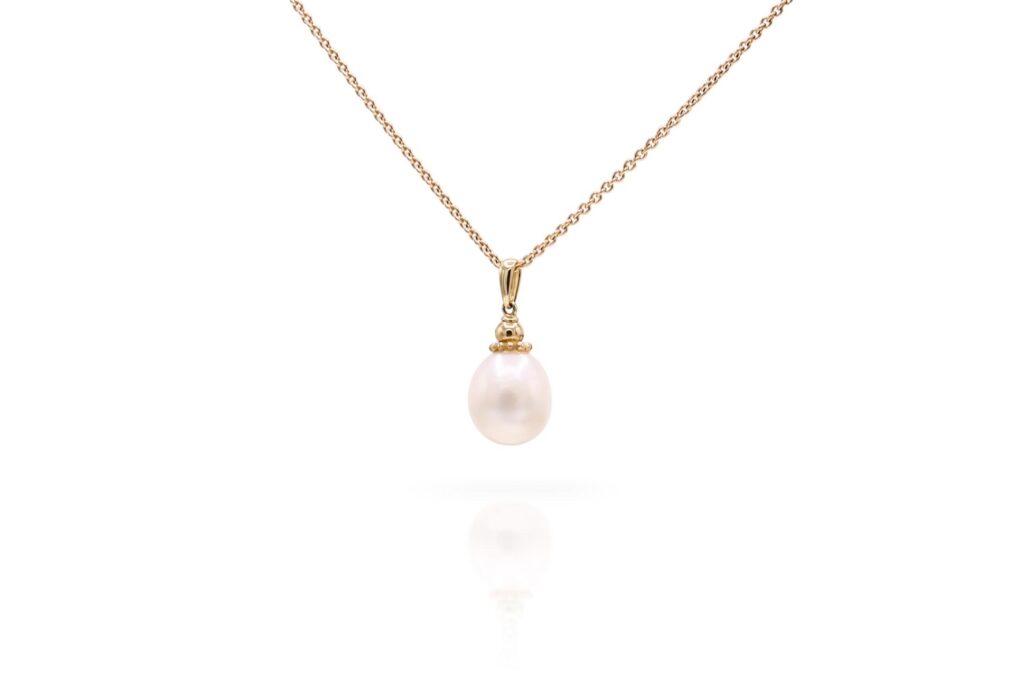 Handgemaakt hanger met gouden ketting. Deze bijzondere hanger is uitgevoerd in goud met een zoetwaterparel.